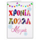Een leuke flinke kaart voor je moeder op haar naaste dag. Het is voorzien van kleurrijke letters en feestelijke vlekken. En het is nog bijzonder om in het Grieks te zijn, haar eigen taal. Κύπρος Αα Κύπρος μα