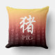 Viel het Chinese nieuwe jaar om met deze eenvoudige maar opvallende kussen, die de Chinese lettervorm voor de Varken, het twaalfde teken/dier in de oostelijke dierentuin, en de traditionele beroemde Chinese groeten, die op een gouden tot rode gradiëntachtergrond worden gemaakt. Personaliseer met een naam of een initiaal! Shows omkeren, identiek ontwerp. Ontwerp © W.H. Sim. Zie meer op zazzle.com/expressionsoccasions