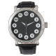 Een stijlvol klokgezicht met de getallen die in cirkelvormige kleurvlekken in elk uur worden geplaatst. Ook beschikbaar in andere kleuren.