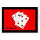 Een foto van vier speelkaarten - een 2 van de schoppen, 3 van de harten, 4 van de clubs en 5 van de diamanten - is het onderwerp van mijn '14 draaien is een grote deal!' verjaardagskaart. De speelkaarten, die in totaal 14 punten bedragen, shows goed tegen een heldere rode achtergrond.