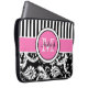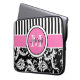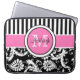 Deze kleurrijke en trendy gepersonaliseerde zwarte, roze, en witte strepen met een laptophoes met floral damask patroon hebben tekstvakken waarmee u uw eigen naam, initialen, monogram, bedrijfsnaam of andere tekst kunt aanpassen. Als u hulp nodig hebt bij het aanpassen, kunt u een e-mail sturen naar niteowlstudio@gmail.com.
