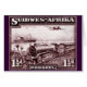 Een 1 1/2 d postzegel uit 1937 in Zuidwest-Afrika met een trein, stoomschip en vliegtuig - alle soorten vervoer die worden gebruikt bij het bezorgen van post aan deze regio van Afrika, die nu de natie Namibië is.