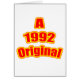 Een Origineel uit 1992, met felrode en gele kleuren, is dit ontwerp perfect voor diegenen die graag in een menigte opstaan. Zeg op een speciale manier gelukkige verjaardag met dit originele geboortejaar ontwerp.