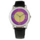 Dit horloge is voor mensen met gedurfde persoonlijkheden omdat het echt opvalt. Met grote, kleurrijke getallen en een paars en goudkleurig twee-toon gezicht, schreeuwt het praktisch de mode vooruit.