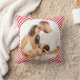 Wij wensen u een vrolijk kerstfeest! Deze vakantiefoto gooi kussen beschikt over een klassieke boodschap in een leuke Candy Cane stijl typografie op een eenvoudige witte en rode achtergrond. Dit ontwerp, het is een geweldige toevoeging aan uw kerstviering voor al uw vrienden en familie.