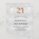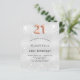 Een moderne, stijlvolle en glamoureuze uitnodiging voor een 21ste verjaardagsfeestje. Een faux zilveren achtergrond, versierd met glitterstof. Personaliseer en voeg jouw naam en partijdetails toe. Nummer 21 wordt geschreven met een roos gouden ballonstijllettertype, script.