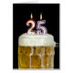 Nummer 25 kaarsen in mok van bier geïsoleerd op zwart voor 25e verjaardag