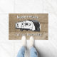 Deze 24 x 36-inch doormat heeft een oude houten achtergrond met een bruine tint. Het heeft een ontwerp gelijkend op een Groot Ontwerp 297rsts aanhangwagen. Je kunt de naam onderaan veranderen in je familienaam en het persoonlijk van jou maken!