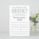 Dit mooie vrijgezellenfeesten spelletjesblad met How Old Was the Bride? op de voorkant en How Well Do You Know The Bride? op de achterkant is eenvoudig en charmant - perfect voor uw douche. Deze leuke en makkelijke spelletjes brengen zeker veel lach naar je vrijgezellenfeest! Laat familie en vrienden je afbeeldingen van de bruid sturen op alle verschillende leeftijden en laat ze printen. Nummer ze en zet ze in de buurt van deze spelbladen. Geef simpelweg een sheet aan elke gast (vergeet de pennen niet) en laat de competitie beginnen voor het eerste spel! Je zult verbaasd zijn hoeveel mensen echt de leeftijden van de bruid kennen. Vervolgens draai je het blad om en geef je gasten 5 minuten om de vragen te beantwoorden. Je zult erachter komen wie de bruid echt kent. In enkele seconden kun je zien hoe je spelletje eruit zal zien. Selecteer deze Sjabloon personaliseren en typ de namen van de bruid.and bruidegom.