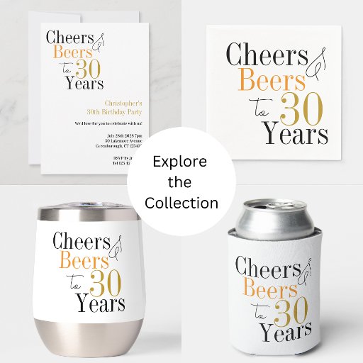 30th Birthday Party Cheers and Beers MinimalOntworpen door Only The Moon