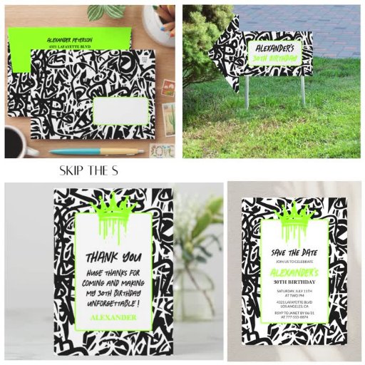 30e verjaardagsuitnodiging Mannen Party Graffiti Crown