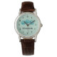 Een gepersonaliseerd horloge met een eenvoudige trio van blauwgroen rozen geschilderd met waterverven. Achtergrond is een groene munt. Personaliseer met een naam.