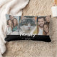Modern 3 fotocollage lumbaal kussen met familienaam en jaar. Trendy, leuke aandenken. Gemakkelijk om de tekst te veranderen.