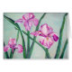 3 roze/paarse irissen op zachte groene achtergrond van een oorspronkelijk acrylschilderij van Kristy McAdams