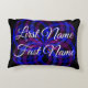 This geometric accent pillow is a parody on our names and showcases an alternative possibility of what our name could look like with a few minor changes. This product features front side, first and last name text customization. On the back side of the pillow, switch the first letter or couple of letters of your front and last names to create the interesting alternative. Enjoy this purplish blue color flower petal geometric theme design. Combine with the in series throw and round pillows to complete the set.