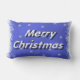 Voeg wat vakantiewaanzin toe aan uw huisbediende decor met deze van een soort 3D-sneeuwvorst van Merry kerst die kussen blauw en wit in de kast gooit.