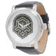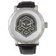 3D Symmetrical Advanced Art Men's Vintage Black Leather Strap Watch – Timeless Hypnotic Elegance