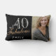 40 en Fabulous Elegant Black 40th Birthday Foto Lumbar Pillow. De achtergrond is zwart. Pas het bord aan met je foto, jouw naam en maak je eigen 40e verjaardag cadeau voor een vrouw.