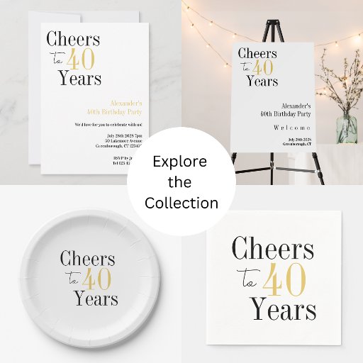 Cheers to 40 Years Minimal Black Gold PartyOntworpen door Only The Moon