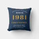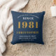 Een gepersonaliseerd klassiek kussenontwerp voor dat verjaardagsfeest voor speciaal man geboren in 1981 en 40 jaar oud. Voeg de naam toe aan dit retro-stijl blauw, wit en gouden ontwerp voor een aangepast 40e verjaardagscadeau. Bewerk eenvoudig de naam en het jaar met de sjabloon die u hebt opgegeven. Een prachtig aangepast blauw verjaardagscadeau. Meer geschenken en feestbenodigdheden voor dat 40e feest zijn beschikbaar in de winkel.
