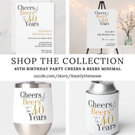 40th Birthday Party Cheers Beer Minimal Black GoldOntworpen door Only The Moon