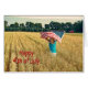 Meisje loopt op een tarweveld met Amerikaans voor Happy 4 juli.