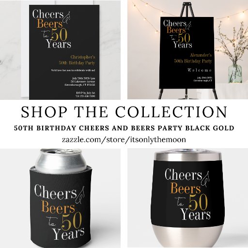 50th Birthday Cheers and Beers Party Black GoldOntworpen door Only The Moon