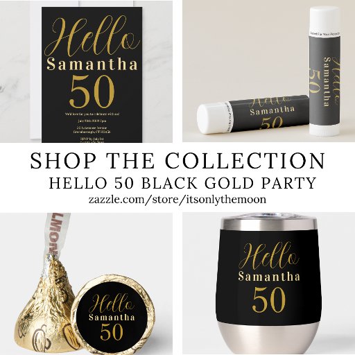 Black Gold Hello 50 Personalized 50th Birthday Ontworpen door Only The Moon