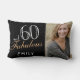60 en Fabulous Elegant Black 60th Birthday Photo Lumbar Pillow. De achtergrond is zwart. Pas het bord aan met je foto, jouw naam en maak je eigen 60ste verjaardag cadeau voor een vrouw.