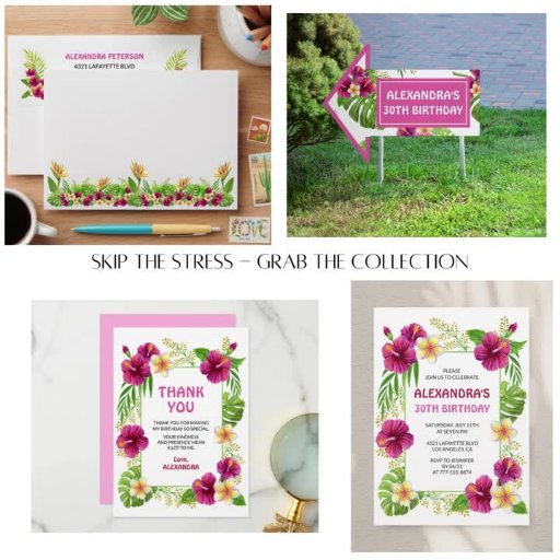 67e verjaardag uitnodigingen Tropische partij Luau Pink hibiscus