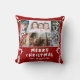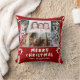 6 Foto-Collage Foliage Merry-Sierkussen uit de kerstfamilie. 6 foto's, vrolijk kerstwens, familienaam en jaar. Gloeiend wit folium op een feestelijke rode achtergrond. Voeg 6 favoriete foto's toe en pas de tekst aan. Mooie jaarlijkse kerstcadeautje of cadeau voor je familie en vrienden.