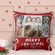 6 Foto Collage Foliage Merry-kerstfamilie Kussen