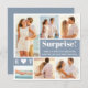 Iedereen zal het leuk vinden om je verlovingsfoto's te zien. Deze verlovingsaankondiging met 6 foto's geeft je een geweldige kans om ze te laten zien. De twee stofblauwe vierkanten bevatten je tekst. Alle witte tekst kan worden bewerkt om je eigen draai te creëren. Ik voegde een speelse Verrassing toe! Dan twee regels tekst in het grote vierkant in het kleinere vierkant heb ik jullie monogrammen ingevoegd, gescheiden door een hart.