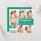 Iedereen zal het leuk vinden om je verlovingsfoto's te zien. Deze verlovingsaankondiging met 6 foto's collage geeft je een geweldige kans om ze te laten zien. De twee smaragdgroene vierkanten bevatten je tekst. Alle witte tekst kan worden bewerkt om je unieke draai te creëren. Ik voegde een speelse Verrassing toe! Dan twee regels tekst in het grote vierkant in het kleinere vierkant voegde ik je monogrammen in, gescheiden door een hart.