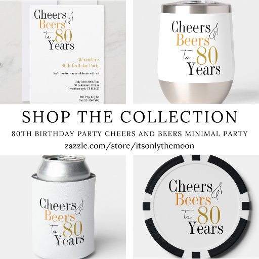 80th Birthday Party Cheers and Beers Minimal PartyOntworpen door Only The Moon