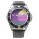 Cool horloge met de Flamingo vliegen over het geweldige 80's zeegezicht