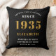 Een gepersonaliseerd klassiek kussen ontwerp voor die verjaardag voor een speciaal persoon geboren in 1935. Voeg de naam toe aan dit retro-stijl zwart, wit en gouden ontwerp voor een aangepast verjaardagscadeau. Bewerk eenvoudig de naam en het jaar met de sjabloon die u hebt opgegeven. Een prachtig verjaardagscadeau op maat. Meer geschenken en feestbenodigdheden voor dat feest zijn beschikbaar in de winkel.
