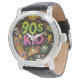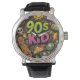 90s Kids Grunge Seamless Pattern: Pizza, Skeletons Horloge