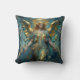 A beautiful angelic throw pillow with a beautiful angel with a turquoise marble background and a gold halo in an impasto style.