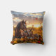 A pretty horse themed throw pillow. A beautiful scene of a mama horse and her baby foal sitting on the Autumn leaves at dusk.