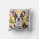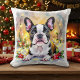 An adorable Boston Terrier dog sitting in illuminated Christmas lights seasonal festive throw pillow.