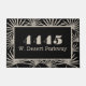 Dit model bevat een patroon van bruine palmschijfjes met uw eigen huisnummer en straatnaam op een zwarte achtergrond. Dit model voegt een aanraking van kunst aan uw ingang toe en laat op luide wijze de leverende bestuurders weten dat zij het correcte adres hebben bereikt.