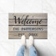 Een perfect schattig en aangepast bijtend hout ziet er uit naar een rustvorm voor je familie. "Welkom!" (in een modern script), zijn uw familienaam en "EST." plus het jaar dat is ingesteld, afgedrukt tegen een foto van warme houten latten. Ideaal voor je boerderij, landshuis, strandhuis, botenhuis of eender welk huis!