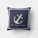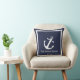 Dit middernachtblauwe kussen heeft een witte rand en anker. Perfect voor een strandhuis of een ander nautisch-themed decor. Personaliseer dit kussen met jouw tekst.
