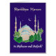 Een stijlvol Ramadan-Wenskaart dat zich zowel aan de voorkant als aan de binnenkant personaliseert, met een monolietak op een diepe blauwe achtergrond, en 'Ramadhan Kareem', van een schilderij van de waterverf van Judy Adamson.