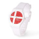 Aangepaste horloge met Deense vlag van Denemarken. met naam of monogram letters. Cool gepersonaliseerde horloges met patriottisch design. Nieuwigheid Verjaardagscadeau idee voor vrienden, collega, baas, zoon, dochter, man, vrouw, broer, zus, vader, moeder, collega, kinder, kleinkinderen etc.