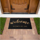 Dit is een gepersonaliseerde Moderne Warm Welcome Doormat. Het is een geweldig cadeau voor nieuwe huiseigenaren of nieuwigheden. Dit gepersonaliseerde welkomstmodel in de kic en duurzaam zwart. Deze zwarte welkome vormfunctie is "welkom" in een modern, elegant handgeschreven kalligrafiemanuscript.U kunt zich personaliseren met uw familienaam en het jaar dat in het klassieke blokschrift wordt vastgesteld.