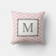 Aangepast monogram lichtroze en witte Chevron Kussen