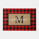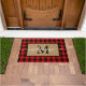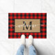 Hedendaagse rustieke deurmat met zwart en rood geruit geplakt patroon en vriendelijke welkomstgroet geschreven in een elegante stijlvolle kalligrafie lettertype. Met ruimte om aan te passen of te personaliseren met een familienaam monogram of initiaal naar keuze. Originele eenvoudige stijl decor accent voor het versieren van de veranda of drempel van uw land huisje, blokhut, berg lodge, viskamp, meer of rivier vakantiehuis.