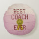 Fun Netball ontwerp ronde kussen met aanpasbaar ontwerp en aanpasbare beste coach. Gepersonaliseerde Netball Coach cadeauideeën.